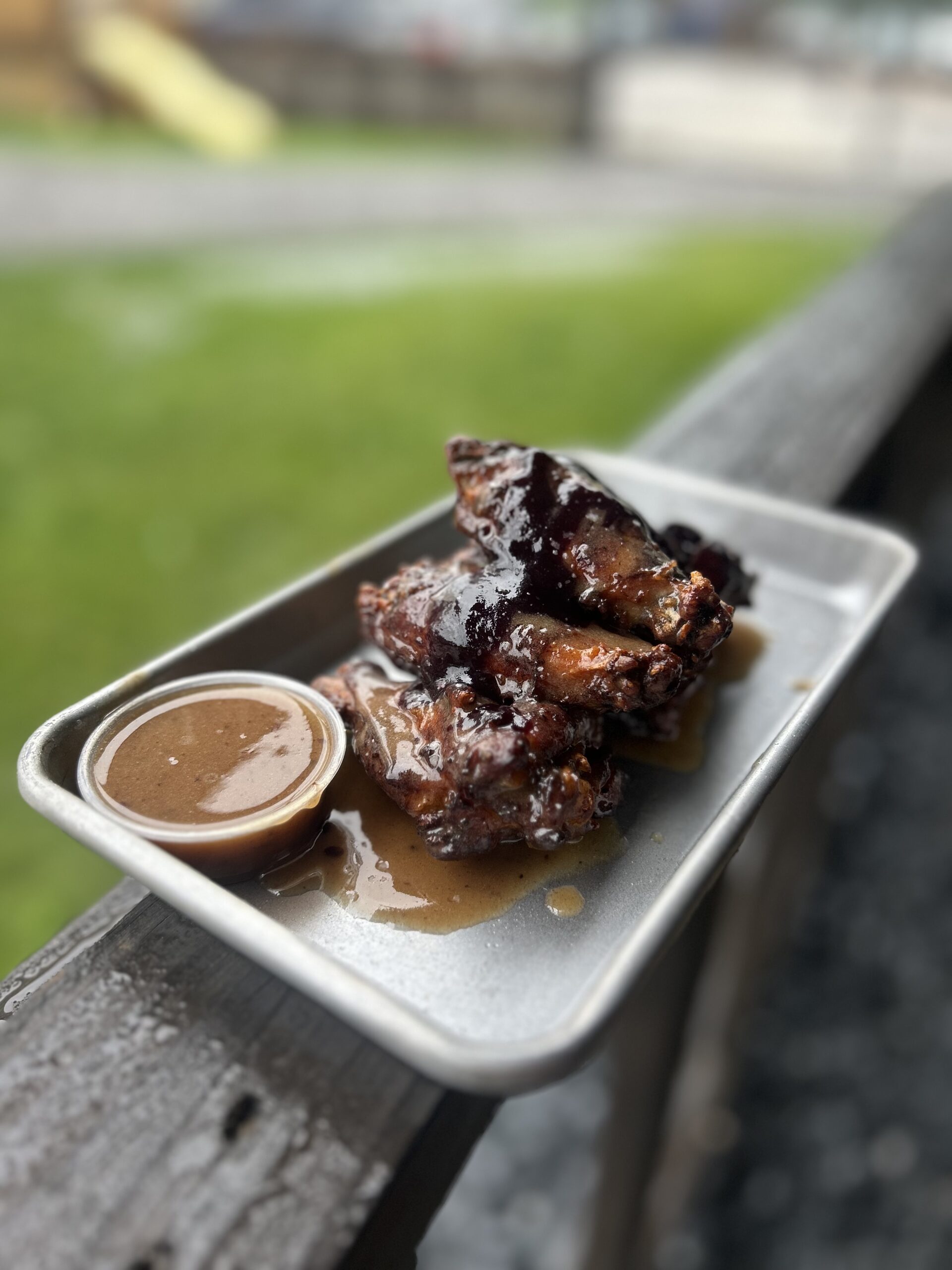 Smoked chicken wings Whole chicken wings smoked and grilled tossed in a crunchy peanut flavored butter sauce and strawberry jelly. Mashed Sweet Potatoes Roasted garlic puree mixed into a rich...